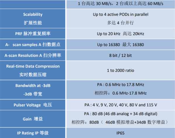 ?改進指標(30MB/s數據吞吐量,1024個焦點法則,12位A掃描等)