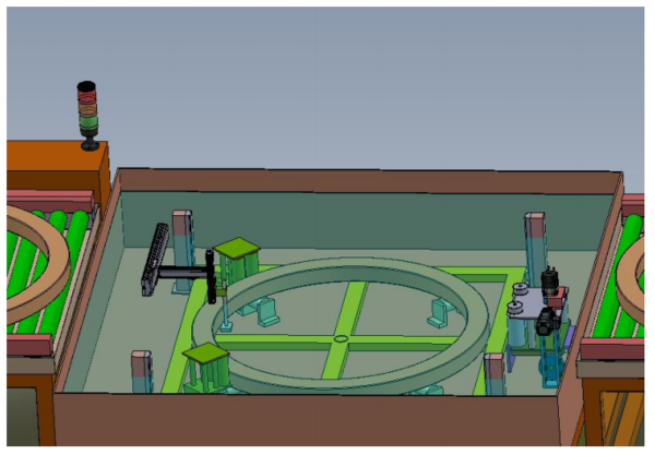 1、上下料因軸承尺寸比較大、工件的重量較大,故需要使用航車自主上下料。檢測平臺設置有可上降平臺、方便工件的放置。